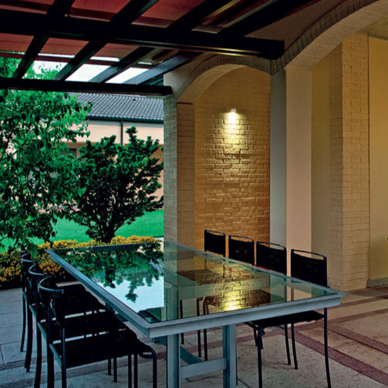 A wall-mounted fixture for outdoor applications featuring a compact, minimalist design.