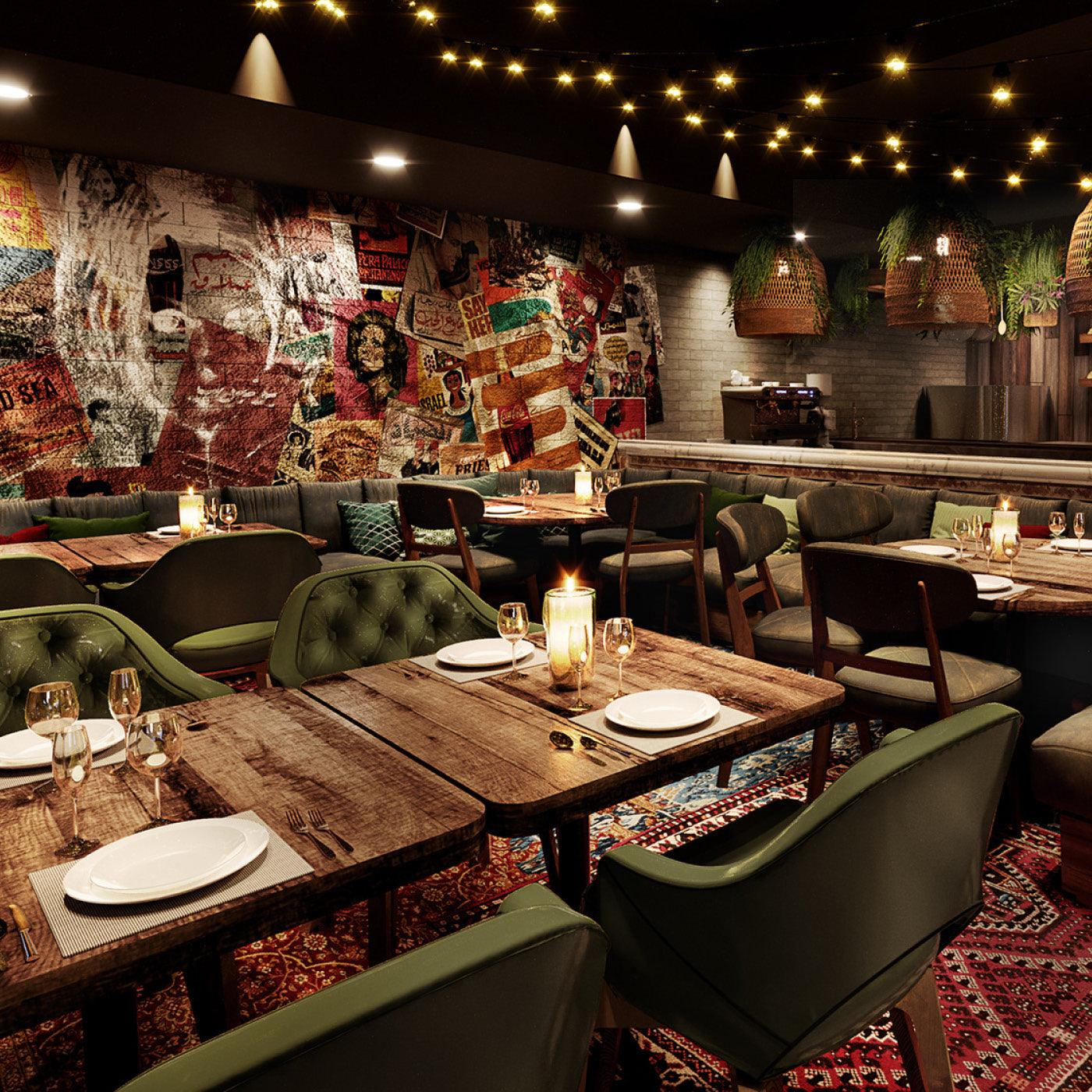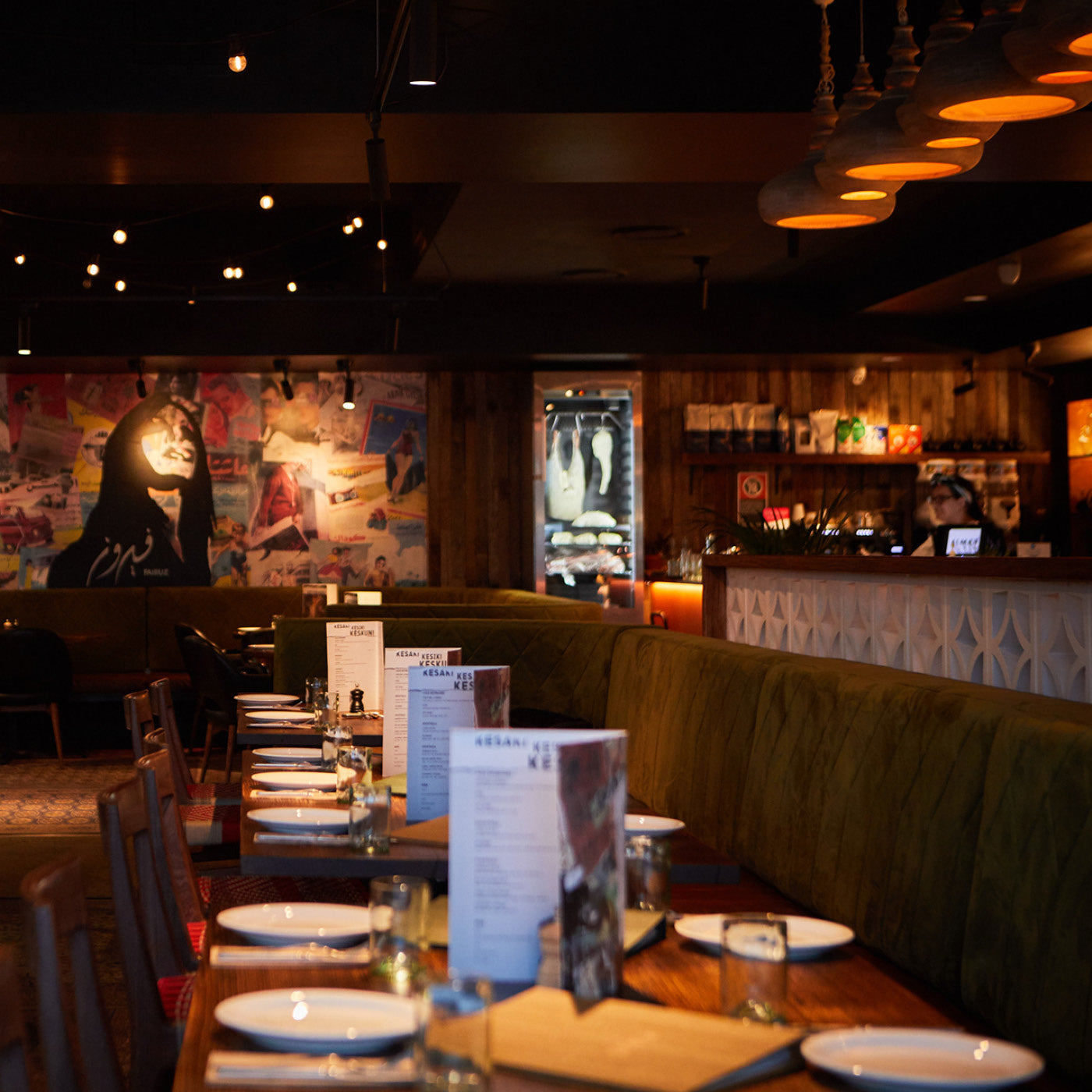 An atmosphere of warmth and soul, brought to life through layers of soft, ambient light. The combination of Poseidon downlights and glowing festoon strands creates a cosy yet elevated dining experience. Designed in collaboration with COOOP, the lighting captures the rich textures, earthy palette, and lively charm of a contemporary mezze setting—where every corner feels inviting and every meal feels shared.
