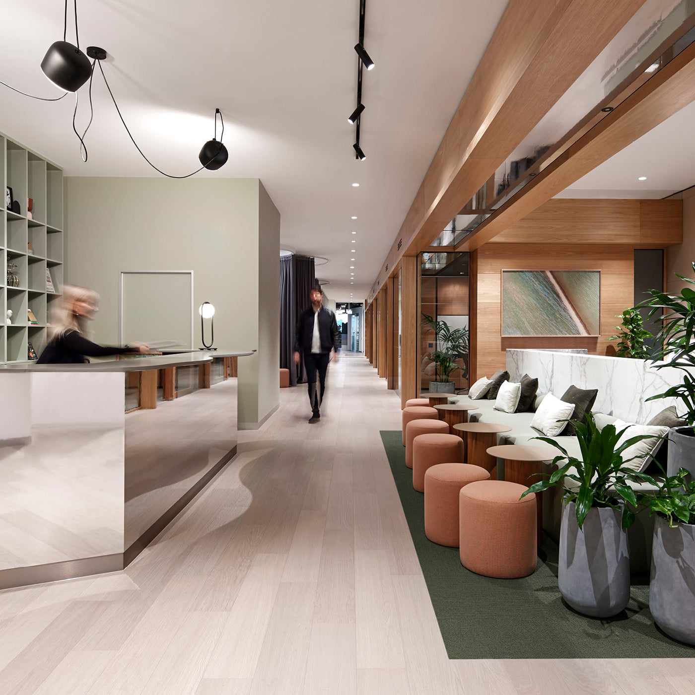 Our lighting design complements the warm, modern interiors, using a mix of suspended feature lights, discreet linear fittings and soft ambient illumination to create a calming atmosphere throughout. The end result is a light-filled environment that supports focus, creativity and collaboration—day or night.